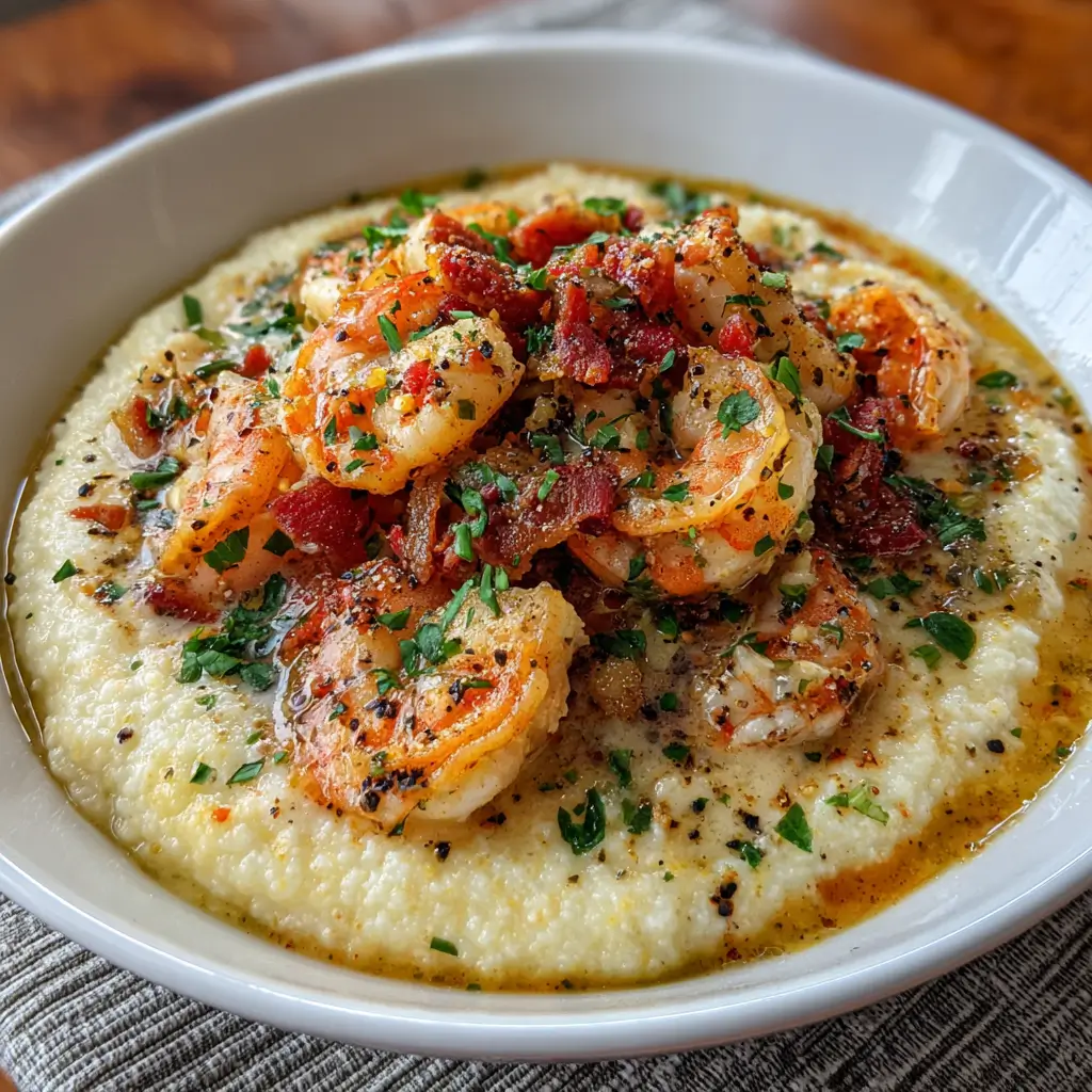 - Gourmet Presentation: Pipe creamy grits onto the plate, top with seared scallops or lobster instead of shrimp, and finish with microgreens, edible flowers, and truffle oil.